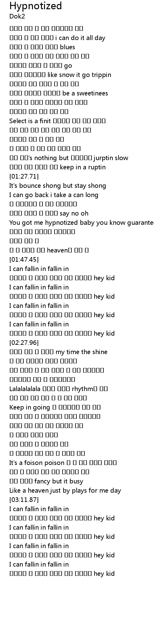 | [03:38.41] | 무언가에 또 홀리는 느낌이 나를 놀리지만 hey kid |