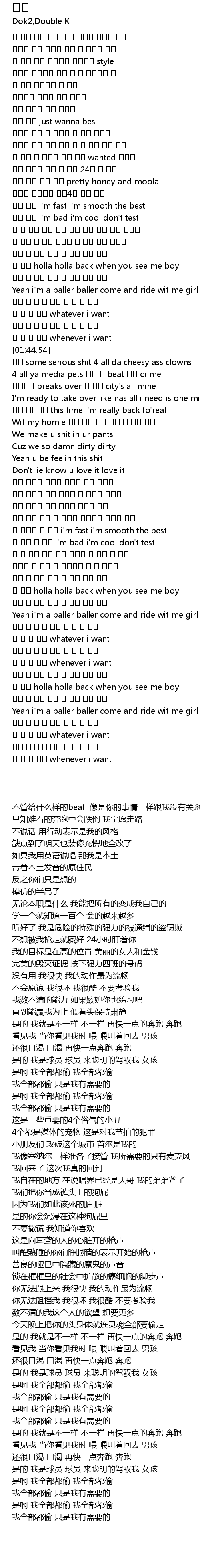 | [01:57.10] | 이건 some serious shit 4 all da cheesy ass clowns |