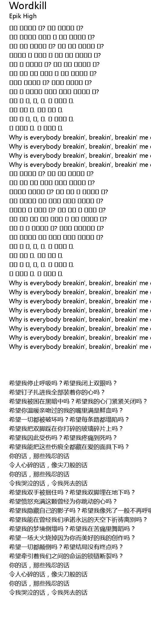 | [00:51.00] | 希望我因此受伤吗?希望我疼痛到死吗? |