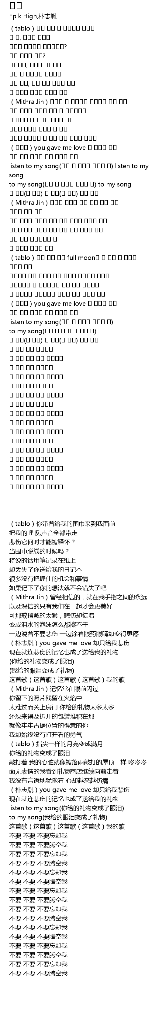 | [02:17.450] | listen to my song(你给的礼物变成了眼泪) |