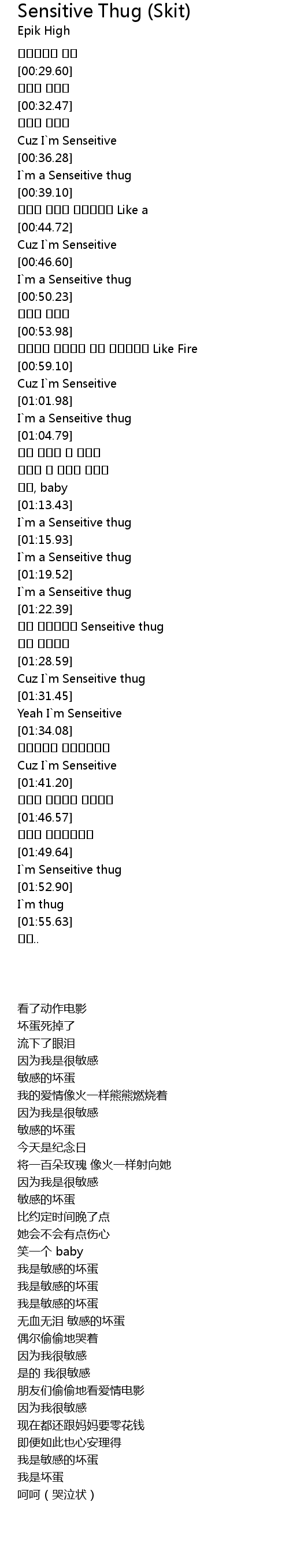 | [00:37.53] | I m a Senseitive thug |