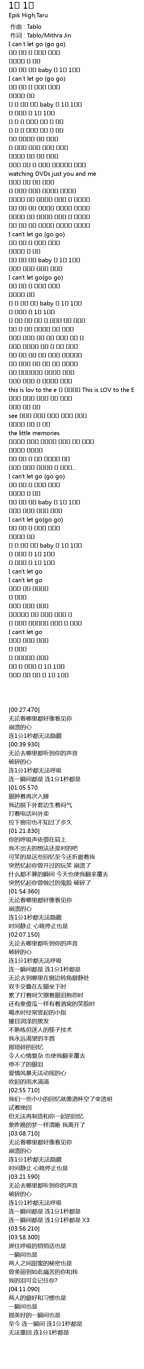 | [00:01.00] | 作词 : Tablo/Mithra Jin |