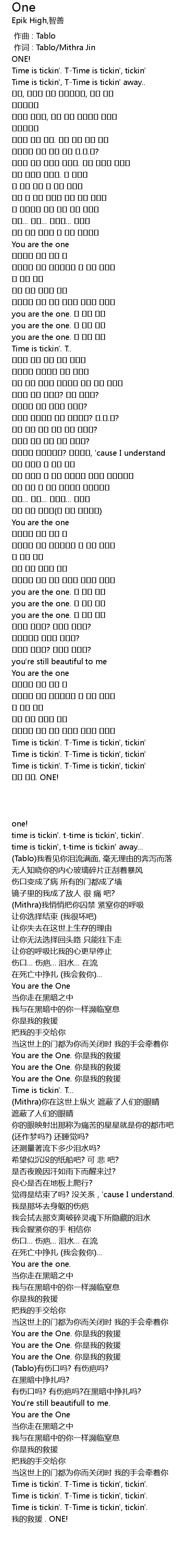 | [00:00.333] | 作词 : Tablo/Mithra Jin |