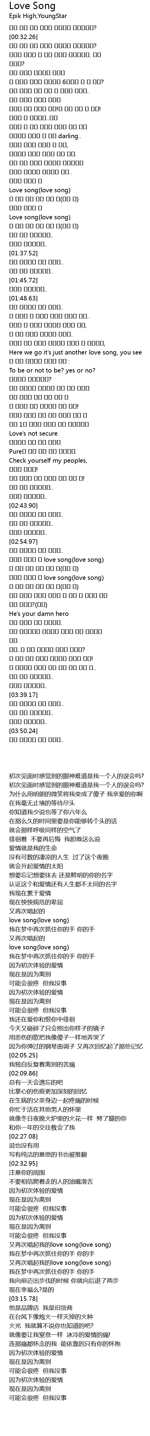 | [03:06.46] | 또다시 부르는 내 love song(love song) |
