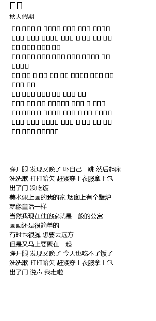 | [02:00.275] | 睁开眼 发现又晚了 今天也吃不了饭了 |
