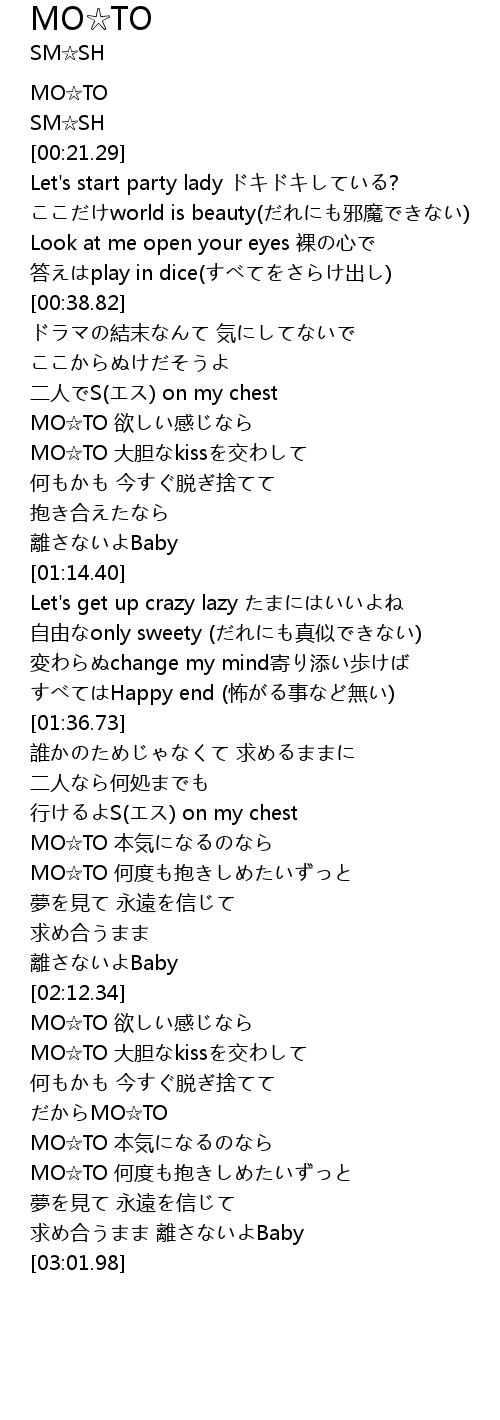 | [00:57.69] | MO☆TO 大胆なkissを交わして |