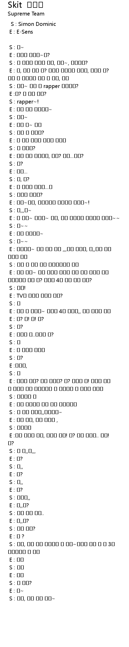 E : 너 임마~ 속사포~ 랩을, 랩을 엄청나게 빨리한단 말이야~~