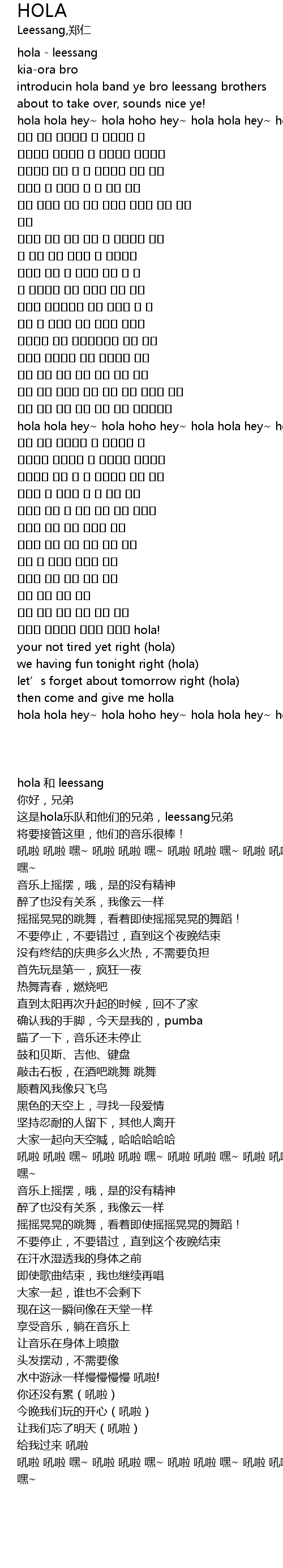 | [00:17.63] | hola hola hey hola hoho hey hola hola hey hola hoho hey |