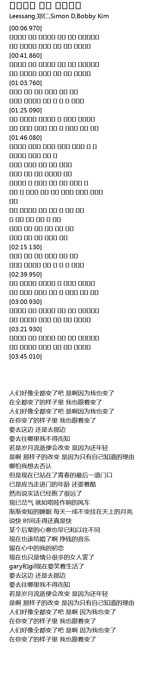 | [00:32.790] | 모두 변해가는 모습에 나도 따라 변하겠지 |