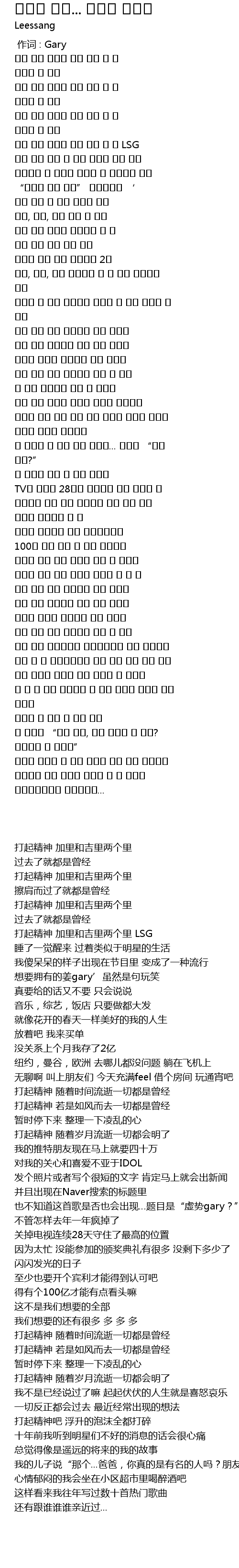 | [01:24.160] | 또 모르지 이 노래 역시 오를지... 제목은 “허세 개리?” |
