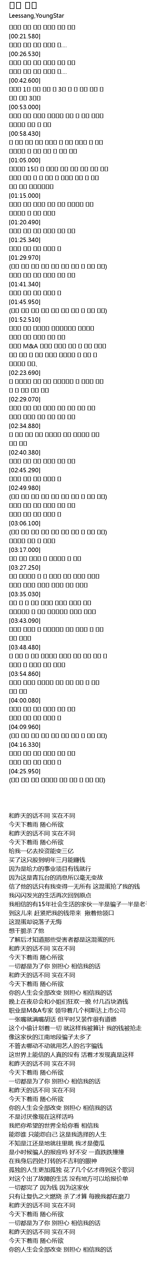 | [02:14.380] | 직업은 M&A 전문가 코스닥 회사 몇 개를 이끈다 |