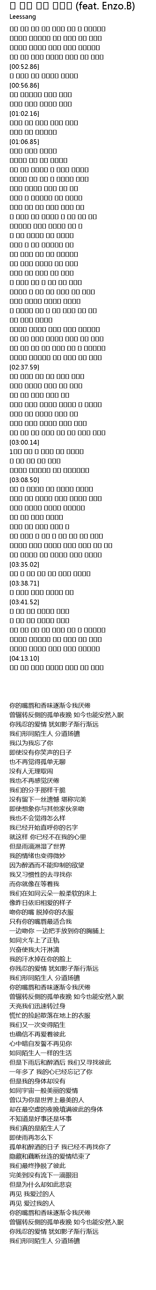 | [04:13.67] | 우린 서로 모르는 사람처럼 각자의 길을 향하네 |