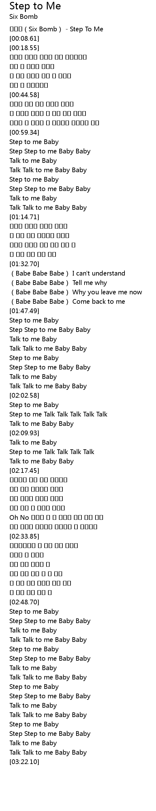 | [03:08.58] | Step Step to me Baby Baby |