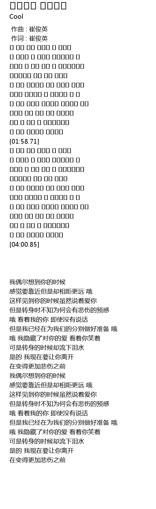 | [00:01.00] | 作词 : 崔俊英 |