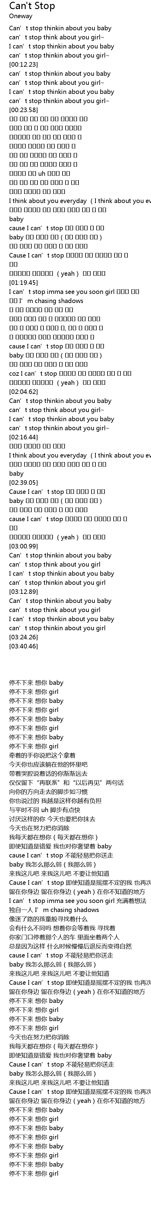 | [03:18.82] | 停不下来 想你 baby |