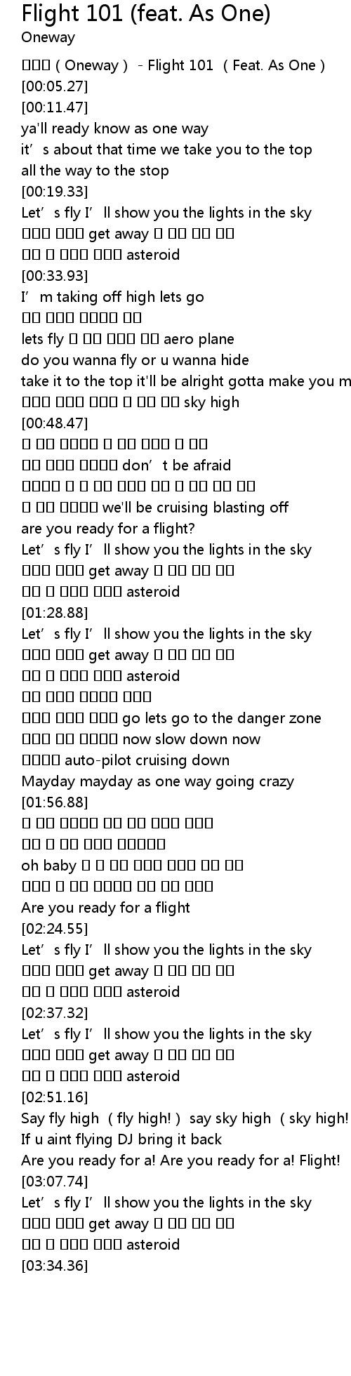 | [00:00.54] | 원웨이(Oneway) - Flight 101 (Feat. As One) |