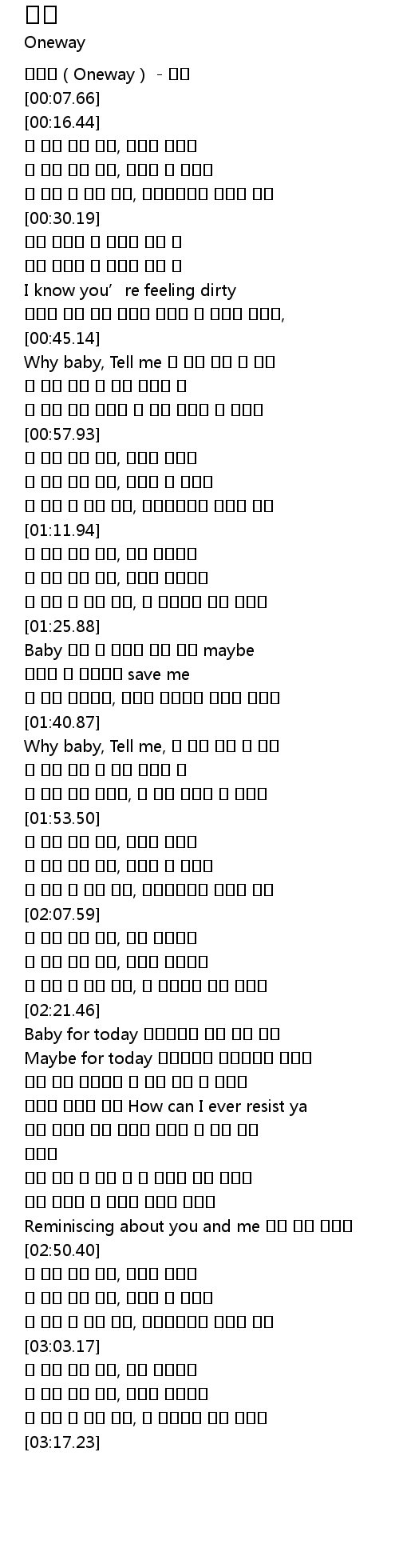 | [01:41.32] | Why baby, Tell me, 말 없이 떠나 간 거니 |