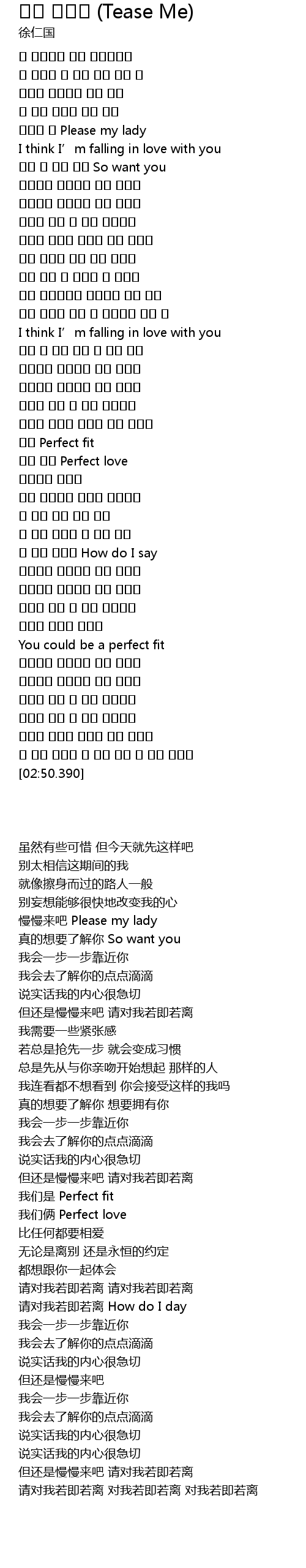 | [01:36.83] | 我们俩 Perfect love |