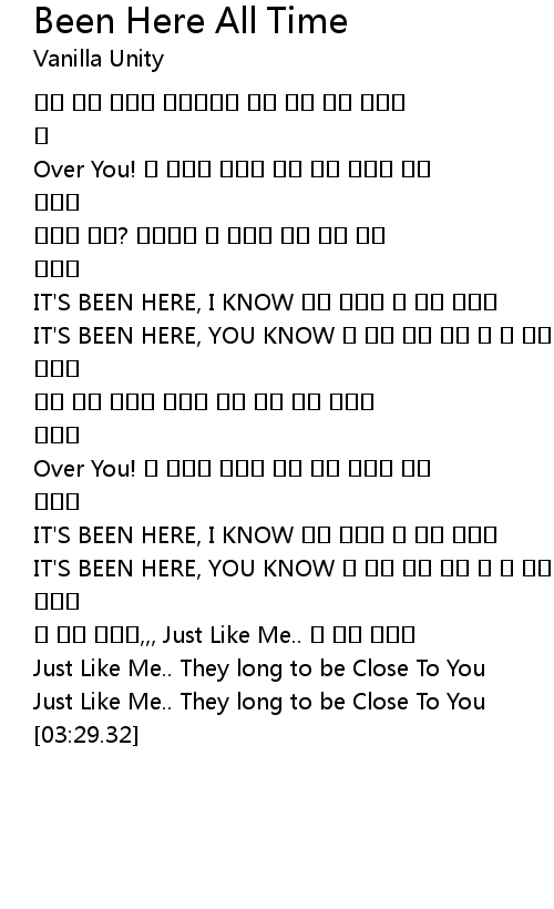 | [01:24.62] | IT' S BEEN HERE, I KNOW |