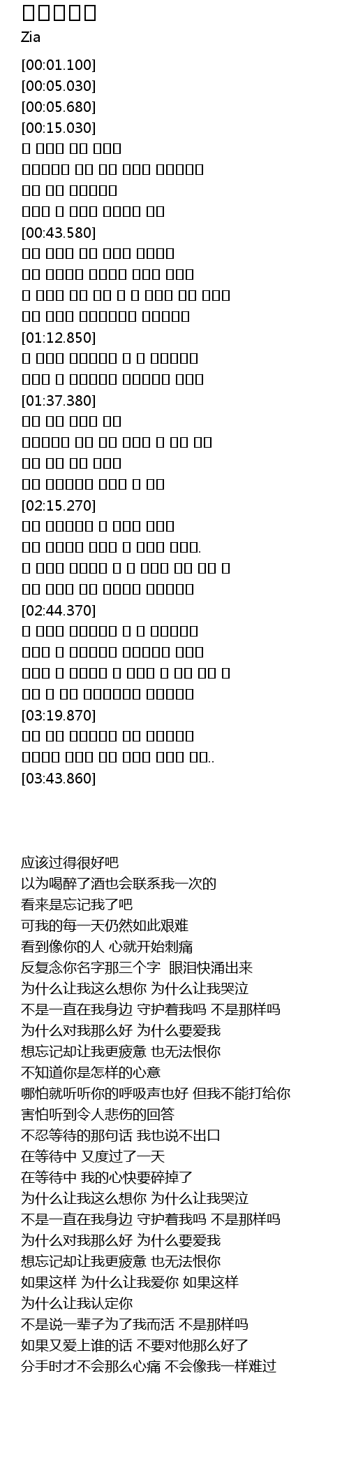 | [01:12.930] | 왜 그렇게 잘해준거니 왜 날 사랑한거니 |