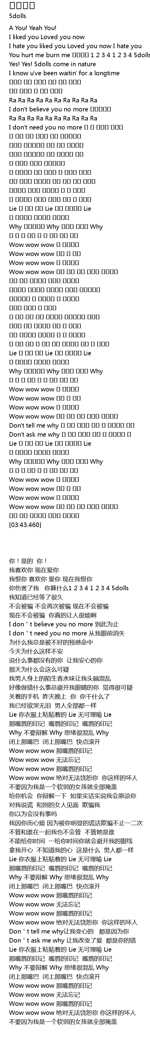 | [02:23.14] | Lie 你衣服上粘贴着的 Lie 无可理喻 Lie |