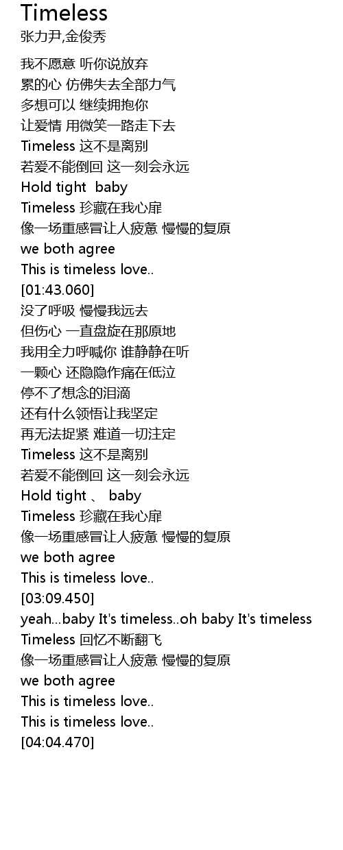 | [01:18.660] | Timeless 珍藏在我心扉 |
