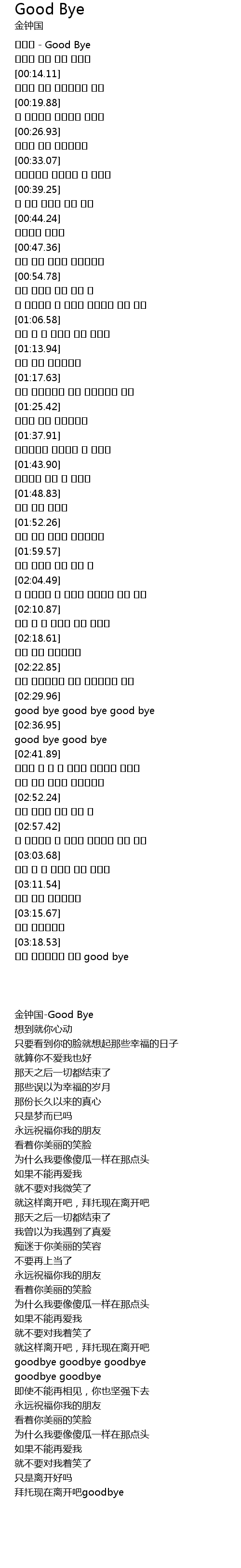 | [00:01.13] | 金钟国-Good Bye |