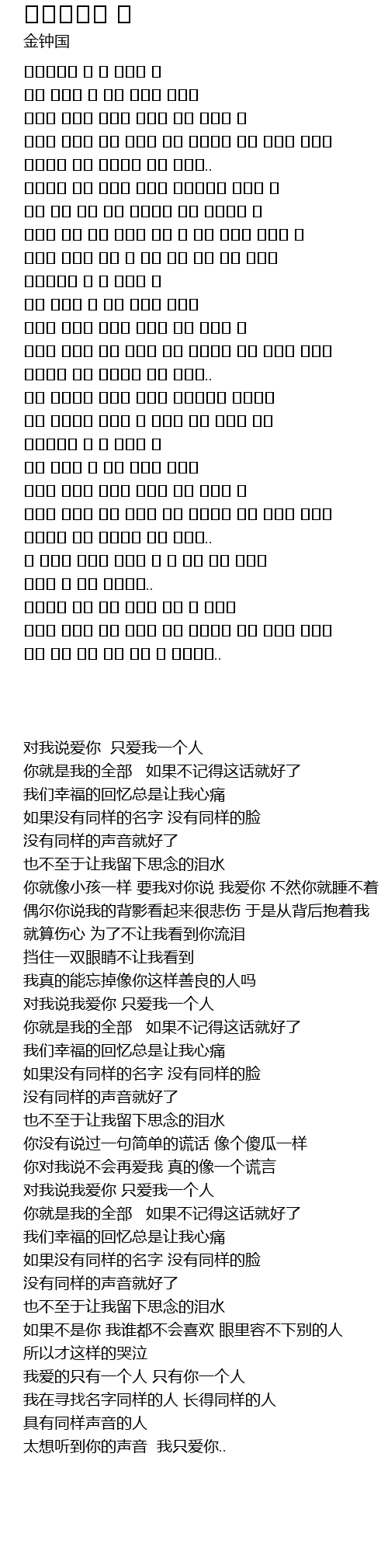 | [00:37.290] | 똑같은 이름도 닮은 얼굴도 닮은 목소리도 다신 없으면 좋겠어 |