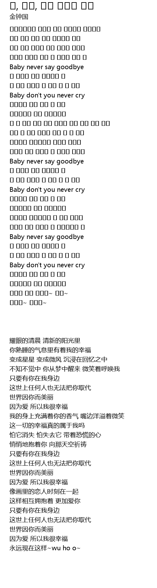 | [00:53.930] | Baby never say goodbye |