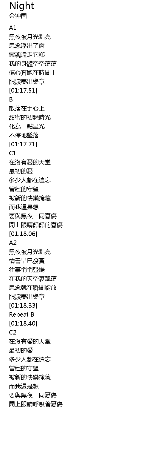 | [01:18.36] | Repeat B |