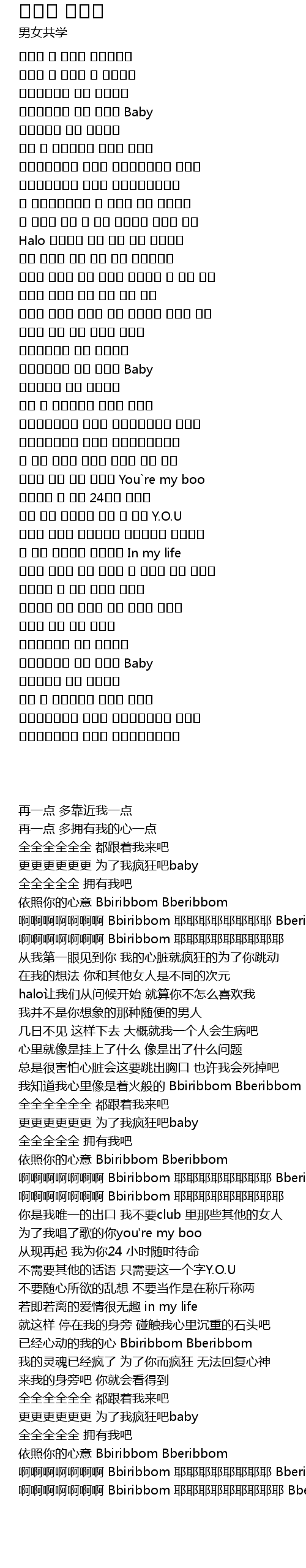 | [00:35.020] | 啊啊啊啊啊啊啊 Bbiribbom 耶耶耶耶耶耶耶耶耶 |
