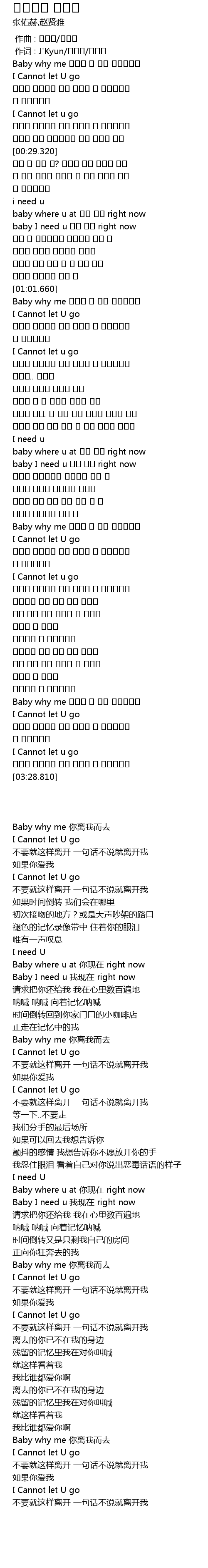 | [02:58.860] | Baby why me 그대는 날 두고 떠나가는데 |