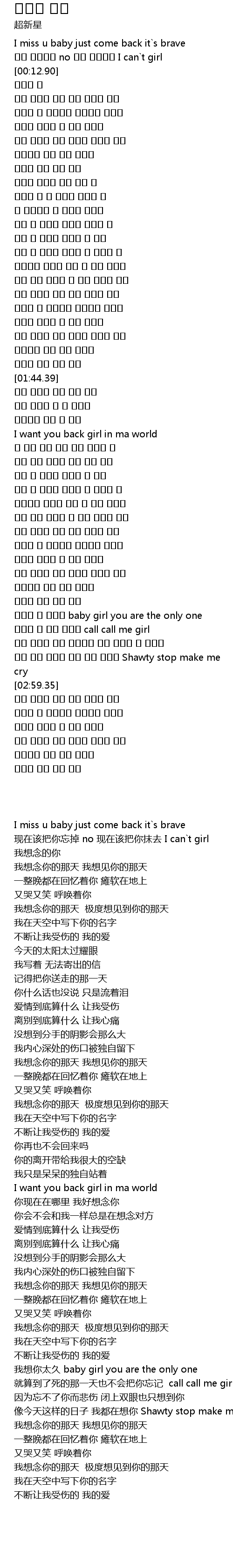 | [00:02.22] | I miss u baby just come back it`s brave |
