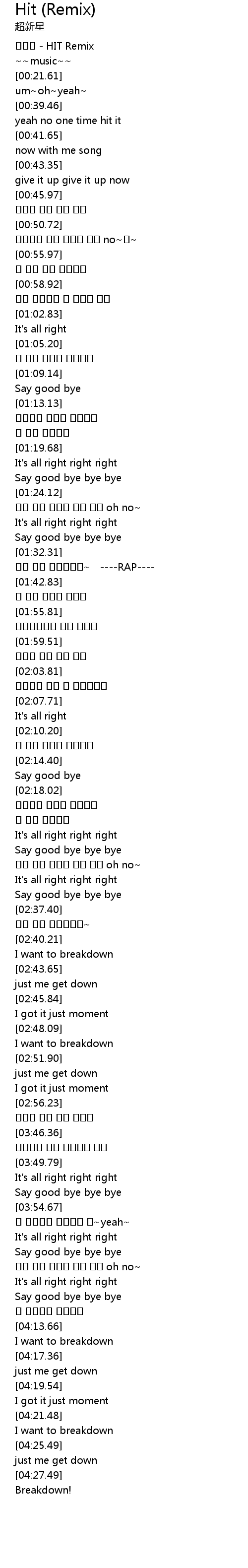 | [00:06.17] | 초신성 - HIT Remix |