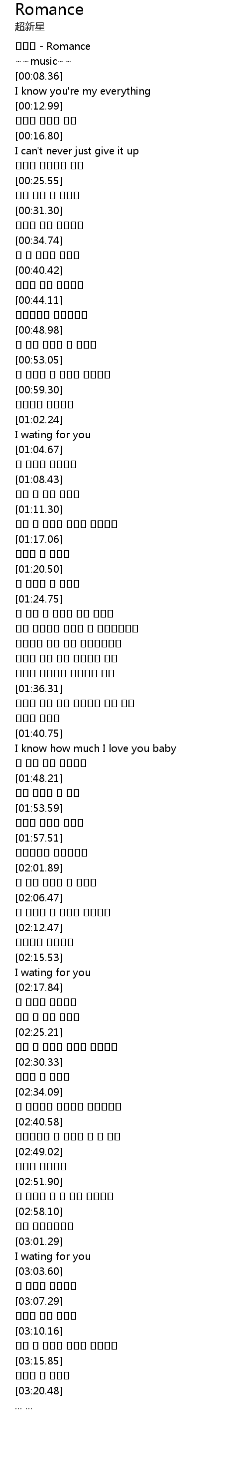 | [00:01.05] | 초신성 - Romance |