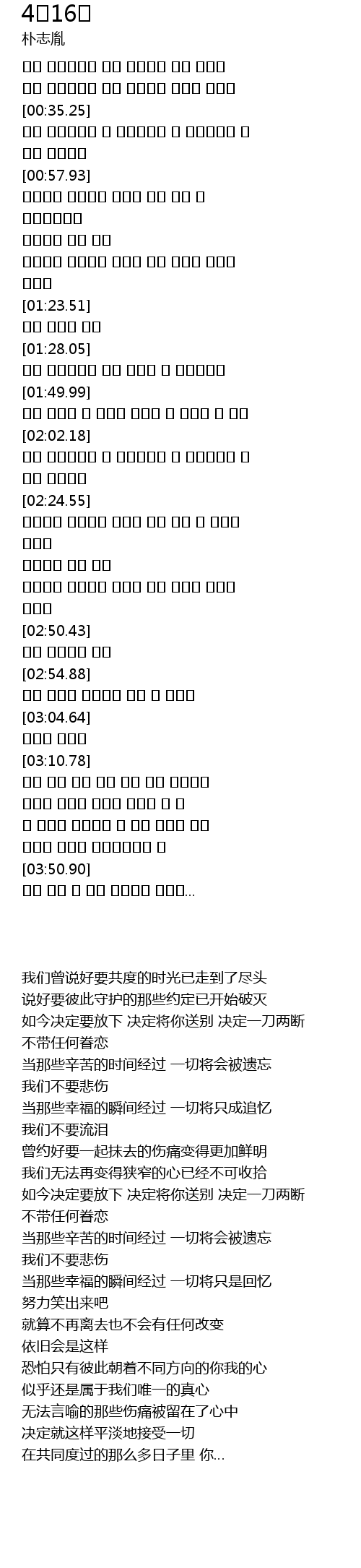 | 歌曲 | 4월16일 |