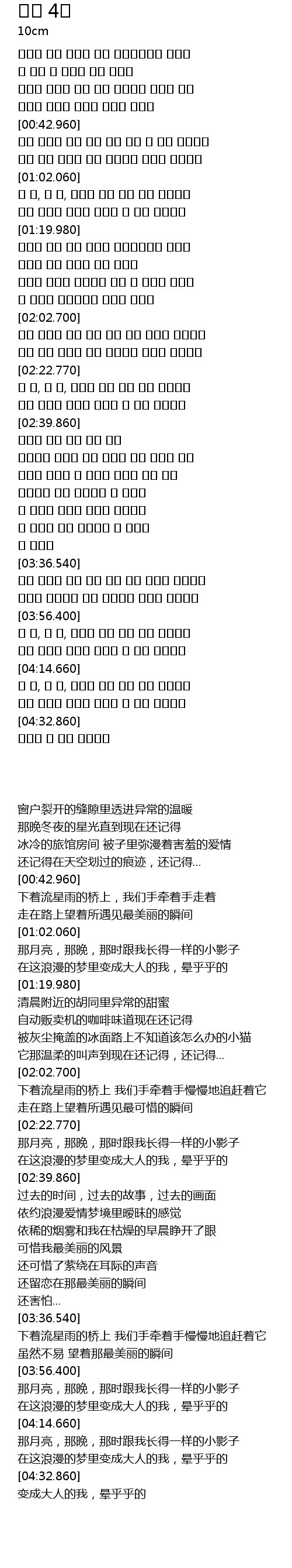 | [04:05.700] | 지난 낭만의 꿈속에 어른이 된 나는 어지러워 |
