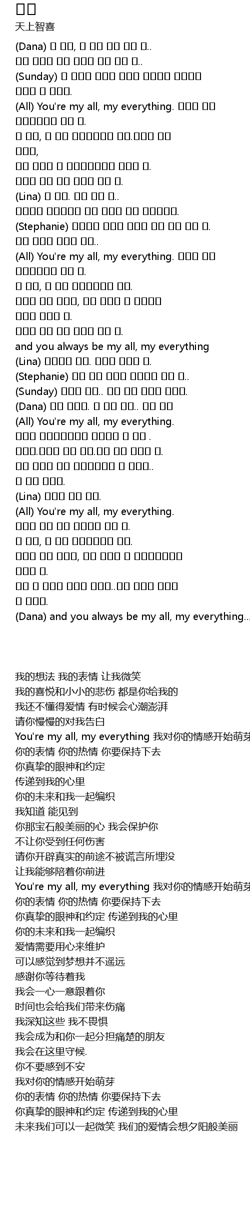 | [02:07.00] | (All) You're my all, my everything. 어렵지 않게 네가느껴지고 있는 걸. |