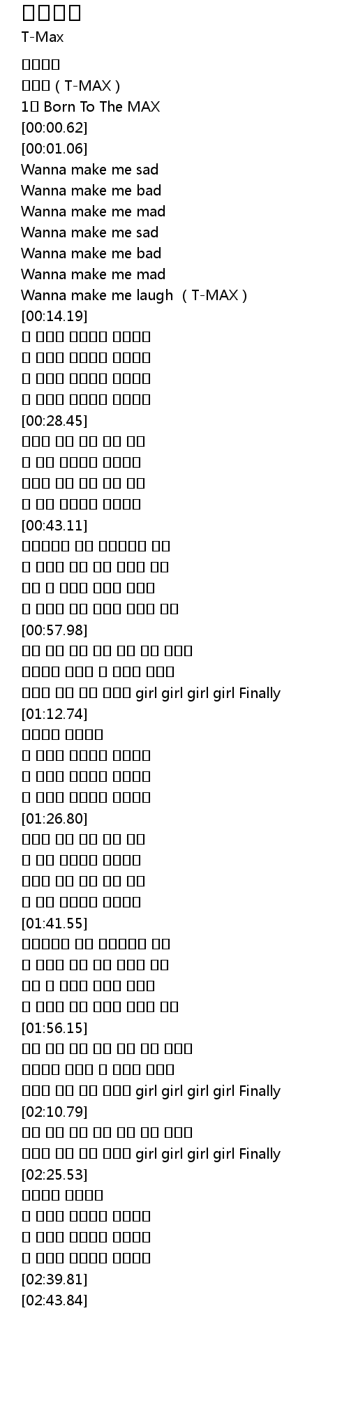 | [00:12.35] | Wanna make me laugh (T-MAX) |