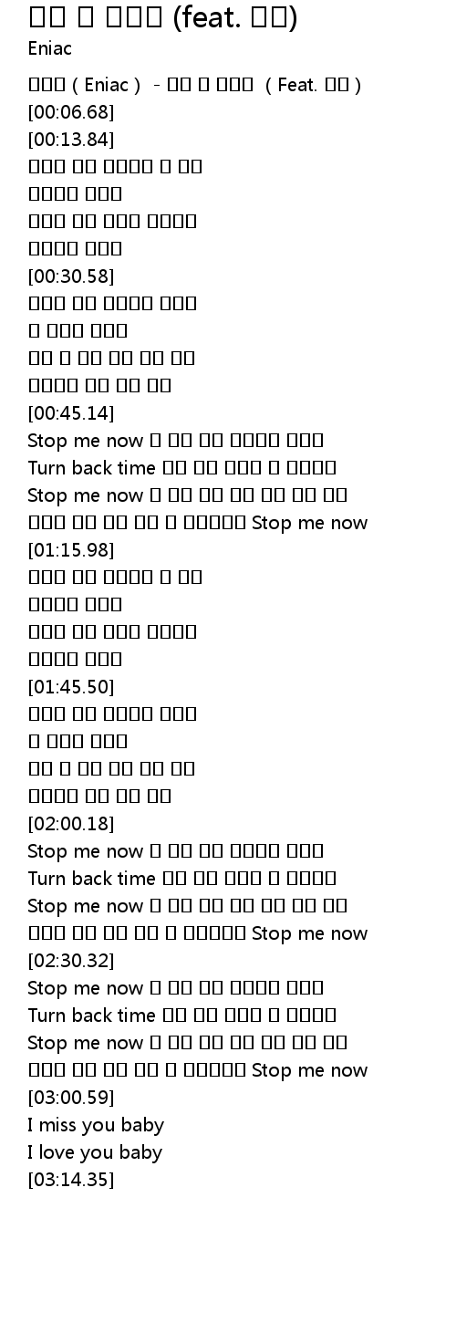 | [02:00.59] | Stop me now 참 오래 전에 멈춰버린 시간들 |