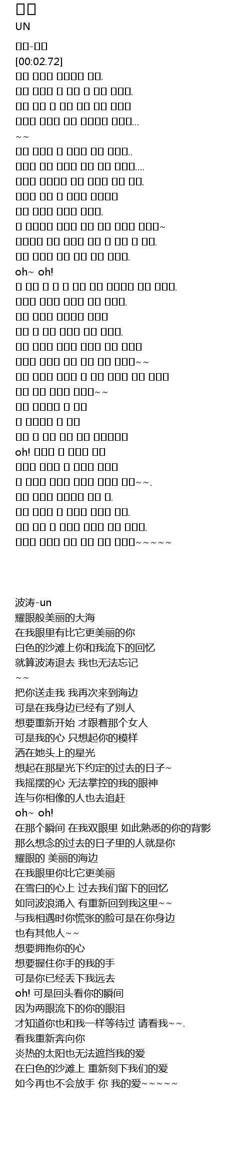 | [00:00.63] | 파도-유엔 |
