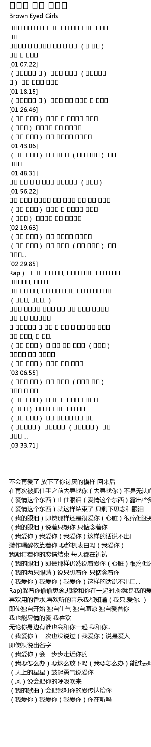 | [02:25.46] | (너를 사랑해) 너를 사랑해 (너를 사랑해) 말은 못하고... |