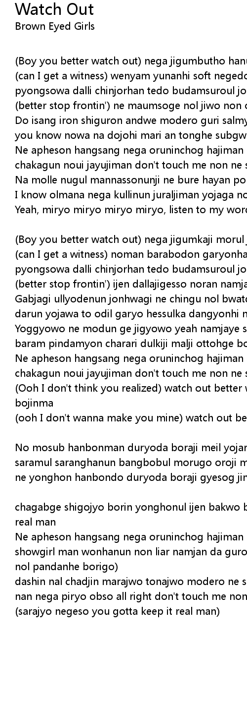 (Ooh I don't think you realized) watch out better watch out no narul shwibge bojinma |