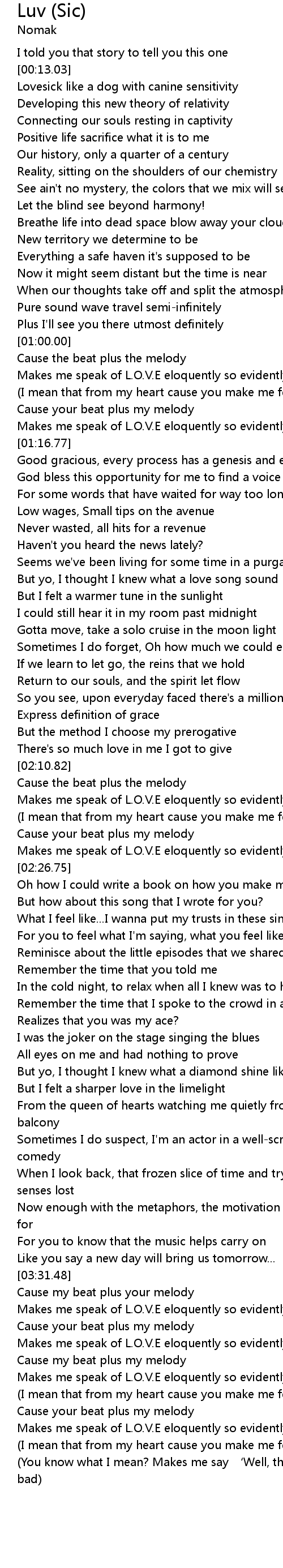 | [01:40.64] | But yo, I thought I knew what a love song sound like |