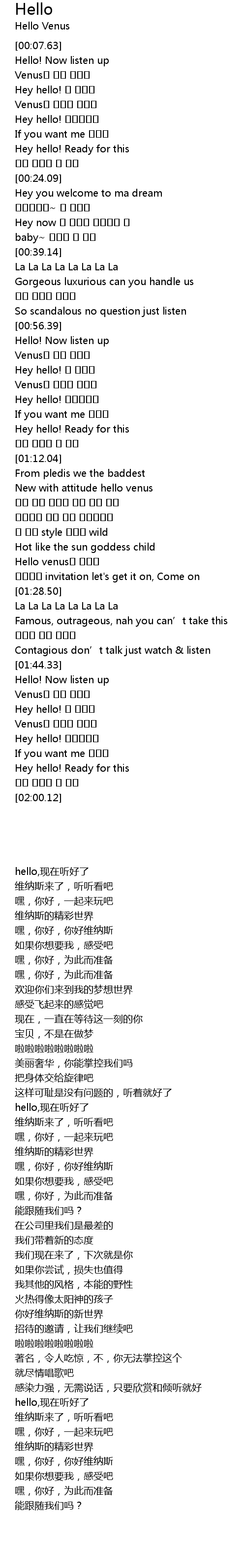 | [01:52.18] | Hey hello! 헬로비너스 |