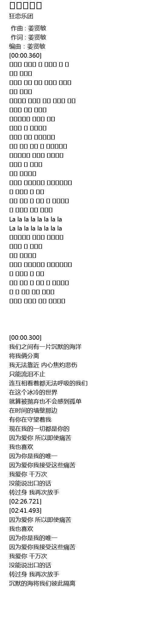 编曲:姜贤敏 |