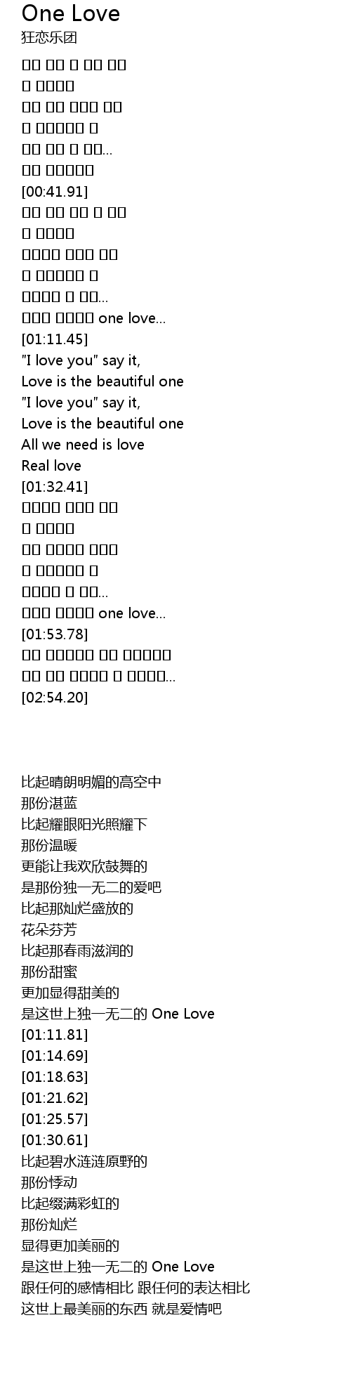 | [01:52.31] | 是这世上独一无二的 One Love |