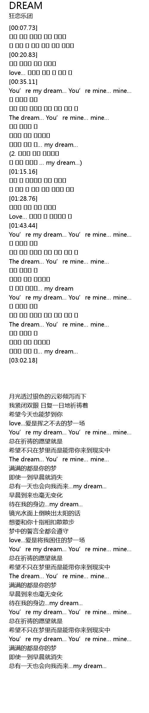 | [01:43.76] | You’re my dream… You’re mine… mine… |