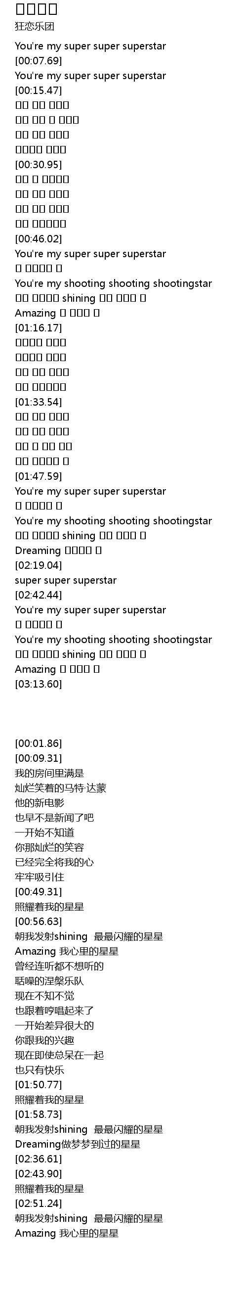 | [01:58.73] | You' re my shooting shooting shootingstar |