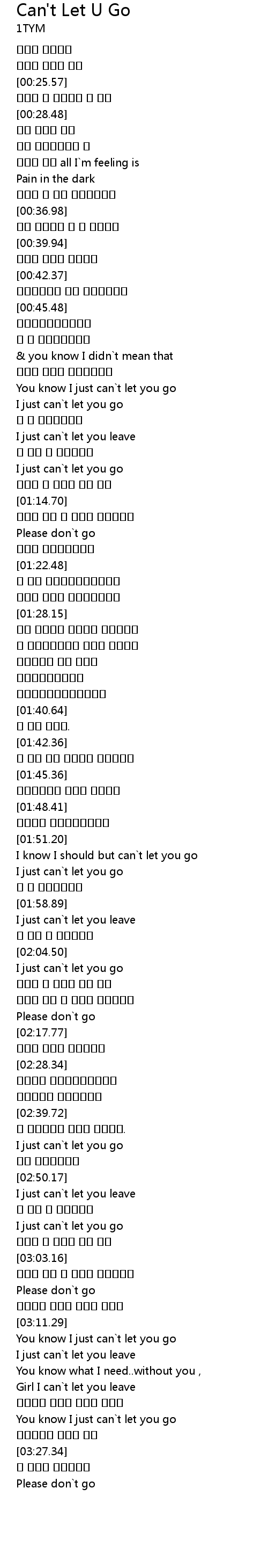 | [03:18.79] | Girl I can t let you leave |